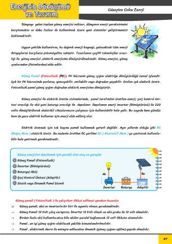 lığı ile güneş enerjisi ,elektrik enerjisine dönüştürülmektedir. Güneş enerjisi, güneş
