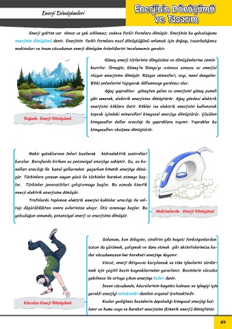 enerjinin dönüşümü denir. Enerjinin farklı formlara nasıl dönüştüğünü anlamak için doğayı, tasarladığımız