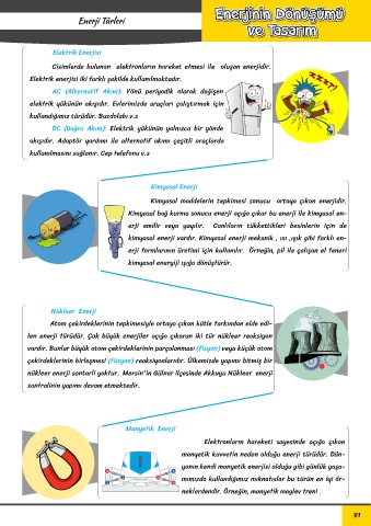 kimyasal enerji vardır. Kimyasal enerji mekanik , ısı ,ışık gibi farklı en-