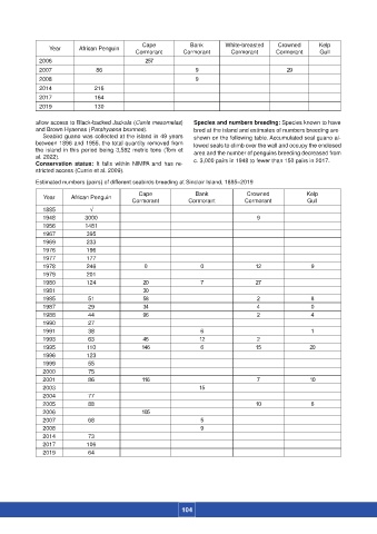 and Brown Hyaenas (Parahyaena brunnea). bred at the island and estimates of numbers breeding are
