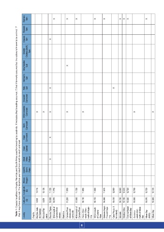 Table 1: Coastal localities in Angola, Namibia and South Africa used for breeding by seabirds. X indicates that breeding occurred, E that it formerly occurred but the colony is known to be extinct, ‘?‘