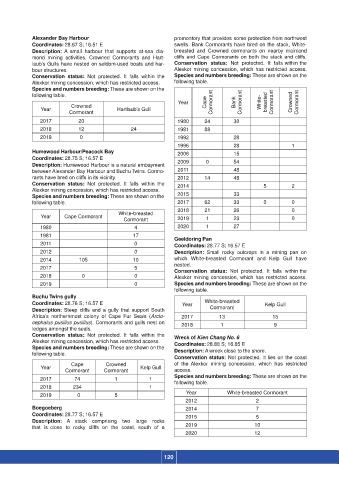 mond mining activities. Crowned Cormorants and Hart- cliffs and Cape Cormorants on both the stack and cliffs.