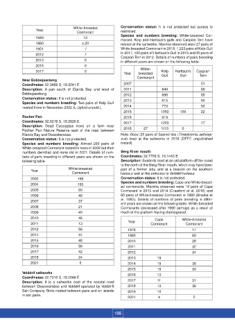 2012 7 in 2017, 100 pairs of Hartlaub’s Gull in 2015 and 85 pairs of
