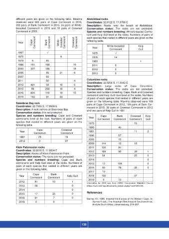 cormorants and Kelp Gull bred at the rocks. Numbers of 2015 12 109 0