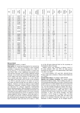 in an effort to preclude access to the island by humans have bred at Marcus Island. Their numbers are given on