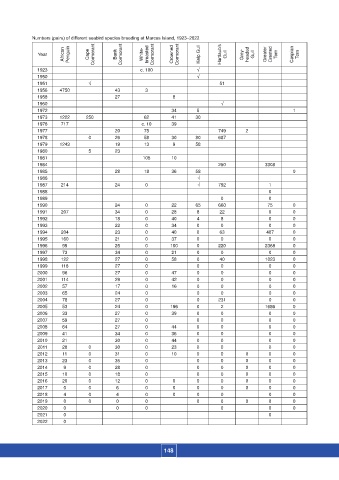 Year African Penguin Cape Cormorant Bank Cormorant White- breasted Cormorant Crowned Cormorant Kelp Gull Hartlaub's Gull Grey- headed Gull Greater Crested Tern Caspian Tern