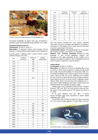 Year Cormorant Gull Crested Tern 46 pairs of Crowned Cormorant, 600 of Hartlaub’s Gull and