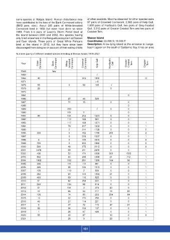 same species at Malgas Island. Human disturbance may of other seabirds. Maxima observed for other species were