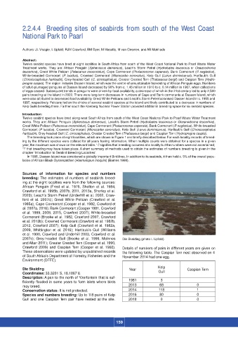 Twelve seabird species have bred at eight localities in South Africa from south of the West Coast National Park to Paarl Waste Water
