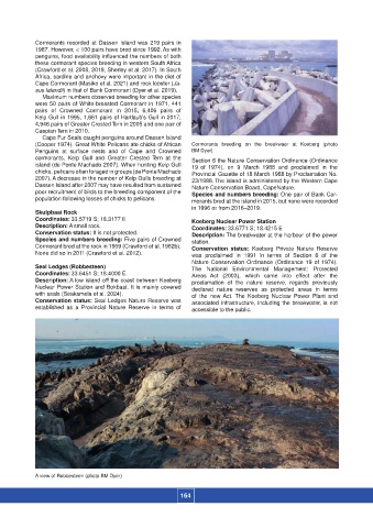 Cormorant bred at the rock in 1959 (Crawford et al. 1982b). Conservation status: Koeberg Private Nature Reserve