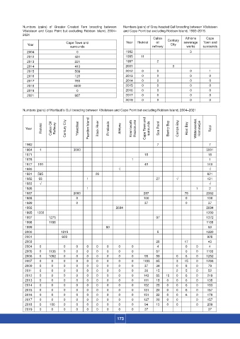 Numbers (pairs) of Hartlaub’s Gull breeding between Vöelsteen and Cape Point but excluding Robben Island, 2004–2021