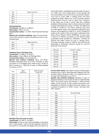 Year Cape Cormorant The lower numbers visiting in 2020/21 and 2021/22 are