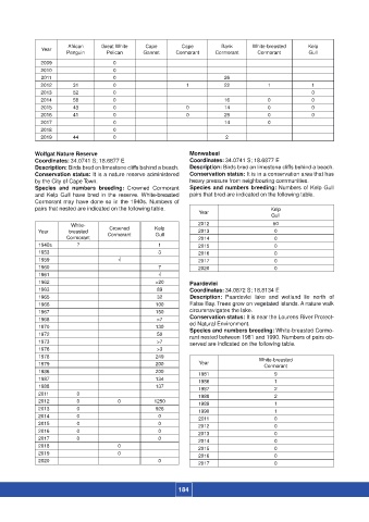 Species and numbers breeding: Crowned Cormorant Species and numbers breeding: Numbers of Kelp Gull
