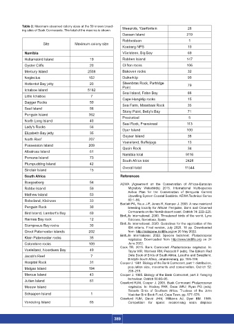 Table 3: Maximum observed colony sizes at the 59 known breed- Meeurots, Yzerfontein 26