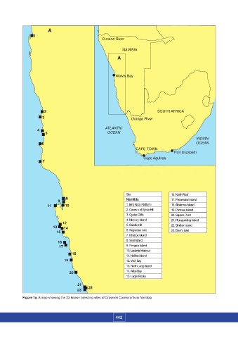Figure 1a. A map showing the 23 known breeding sites of Crowned Cormorants in Namibia