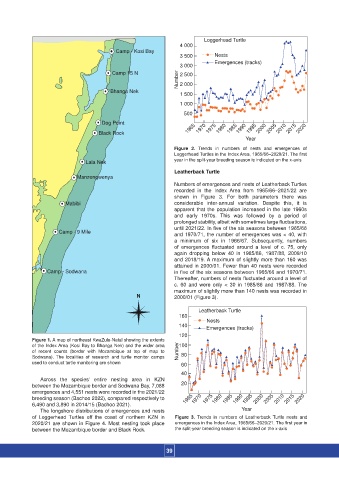 of Loggerhead Turtles off the coast of northern KZN in Figure 3. Trends in numbers of Leatherback Turtle nests and