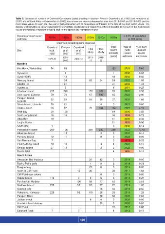 Table 2: Estimates of numbers of Crowned Cormorants (pairs) breeding in southern Africa in Crawford et al. (1982) and Kemper et al.