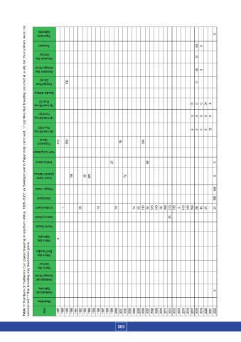 Table 1: Numbers of Hartlaub’s Gull (pairs) breeding in southern Africa, 1888–2022: a) Swakopmund to Papendorp continued. ‘√’ signifies that breeding occurred at a site but the numbers were not