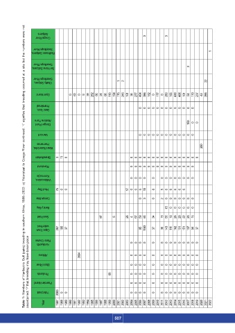 Table 1: Numbers of Hartlaub’s Gull (pairs) breeding in southern Africa, 1888–2022: c) Ysterplaat to Coega River continued. ‘√’ signifies that breeding occurred at a site but the numbers were not
