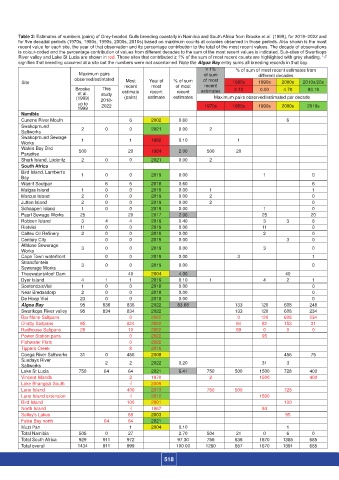 signifies that breeding occurred at a site but the numbers were not ascertained. Note the Algoa Bay entry sums all breeding records in that bay.