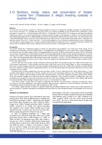 This chapter collates estimates of numbers of Greater Crested Terns breeding at different sites. It makes a preliminary assessment of