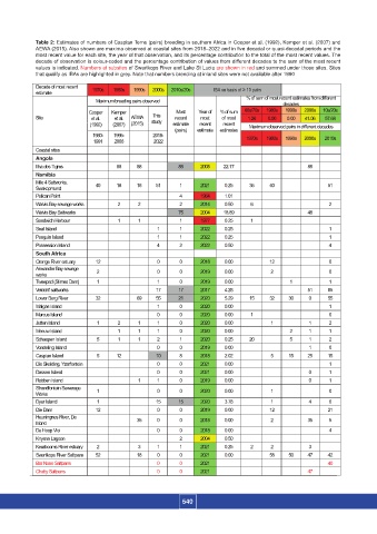 Table 2: Estimates of numbers of Caspian Terns (pairs) breeding in southern Africa in Cooper et al. (1992), Kemper et al. (2007) and