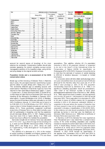 c. 8 years and c. 9 years (Simmons 2005). In South Africa, plumaged birds estimated to be in Namibia in 1991 (Braby