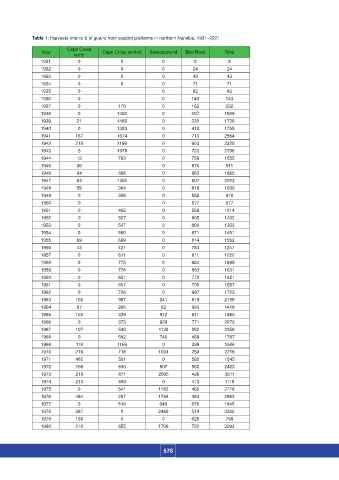 Table 1: Harvests (metric t) of guano from seabird platforms in northern Namibia, 1931–2021
