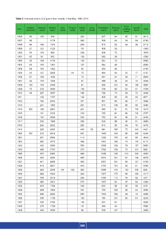 Table 2: Harvests (metric t) of guano from islands in Namibia, 1896–2016