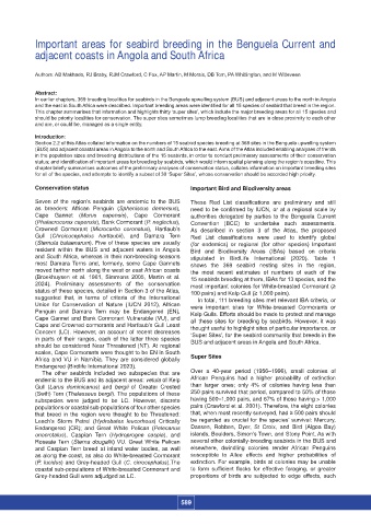 (Broekhuysen et al. 1961, Simmons 2005, Martin et al. 15 seabirds breeding at them, IBAs for 13 species, and the