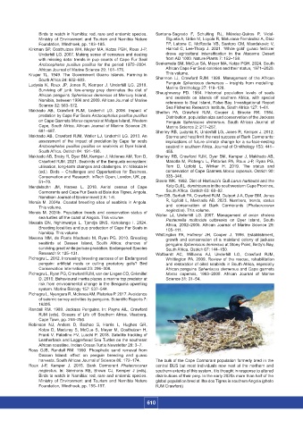 Crawford RJM. 2021. Seabirds of the Benguela ecosystem: Masotla M, Pichegru L, Pistorius PA, Roux J-P, Ryan PG,