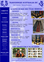 TRAKEHNERS AUSTRALIA INC 2011 Trakehner February Newsletter LEADER BOARD MID YEAR WINNERS COMMITTEE DRESSAGE 2010/2011 Cheryl Elvin and Cloud Eight = WINNER Bridget Caruso and Genuine Coco = 2ND Rebecca Tsouris and Rebellion Santus = 3RD President EVENTING Denise Rutzou Denise Rutzou and TL Viveka = WINNER 03 97566561 Dorothy Roe and AP Phoenix = 2ND Vice President HACKING Kassie McKerras & Excelsior Centerpiece = WINNER Secretary: Bridget Caruso and Genuine Coco = 2ND Tanya Hosford Dorothy Roe and AP Phoenix = 3RD 03 5857291 BREED HALTER Treasurer: Bridget Caruso and Genuine Coco = WINNER Andrea Otto Kay Dawson and Ballanbrea Diva = 2ND Registrar Tanya Hosford and Broken Colours = 3RD Denise Rutzou 03 97566561 BREED RIDDEN Publicity Officer Bridget Caruso and Genuine Coco = WINNER Rebecca Allen Tanya Hosford and Broken Colours = 2ND Committee BREEDERS CUP Members: Bridget Caruso = WINNER Sharon Haddock Suellen Saals = 2ND 0414 660 585 Allison Domney = 3RD Bridget Caruso 0418 597775 LAST CHANCE FOR A TA CALENDAR Jo Russell 0402 039 297 Newsletter Editor Tanya Hosford performancepintos@gmail.com Don’t Miss Out………...Only 9 left Contact: performancepintos@gmail.com For an order Form