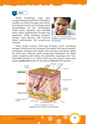 Perhatikan Gambar 9.10! Kulit terdiri atas dua lapisan utama yaitu