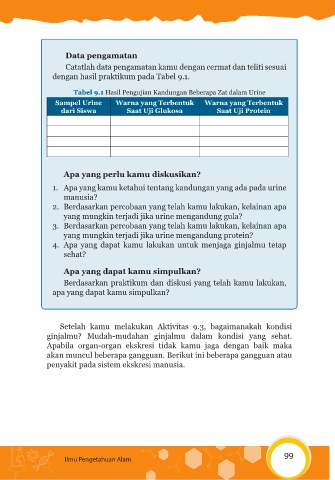 Tabel 9.1 Hasil Pengujian Kandungan Beberapa Zat dalam Urine