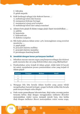 2. Pembentukan urine terjadi di dalam ginjal, isilah tabel di bawah