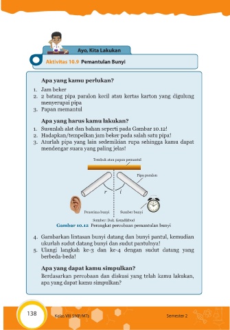 Gambar 10.12 Perangkat percobaan pemantulan bunyi