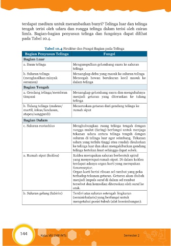 Tabel 10.4 Struktur dan Fungsi Bagian pada Telinga