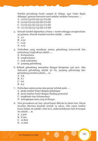 7. Perbedaan antara gema dan gaung terletak pada ....