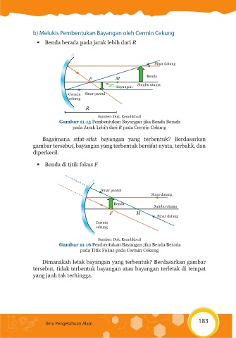 b) Melukis Pembentukan Bayangan oleh Cermin Cekung