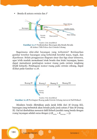 Gambar 11.17 Pembentukan Bayangan jika Benda Berada