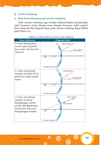 Tabel 11.3 Sinar Istimewa pada Cermin Cembung