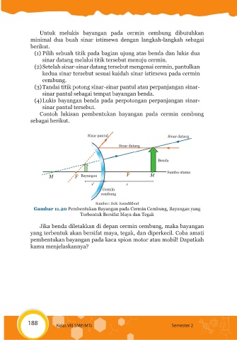 Gambar 11.20 Pembentukan Bayangan pada Cermin Cembung, Bayangan yang
