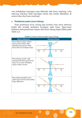 Tabel 11.6 Sinar Istimewa pada Lensa Cekung