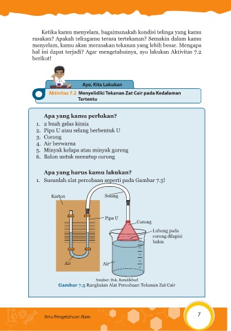 Aktivitas 7.2 Menyelidiki Tekanan Zat Cair pada Kedalaman