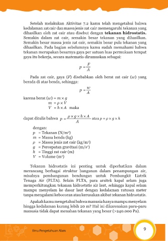 kedalaman zat cair dan massa jenis zat cair memengaruhi tekanan yang