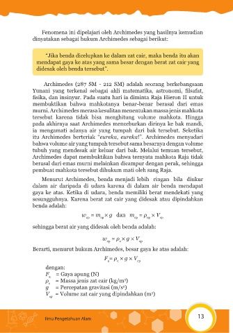 tubuh yang mendesak air keluar dari bak. Melalui temuan tersebut,