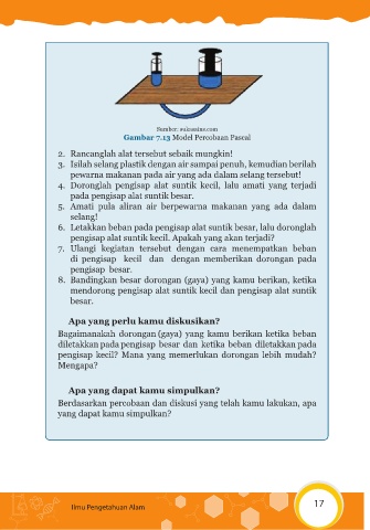 4.  Doronglah  pengisap  alat  suntik  kecil,  lalu  amati  yang  terjadi