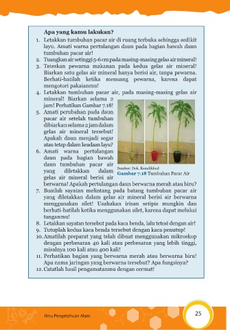 4. Letakkan tumbuhan pacar air, pada masing-masing gelas air