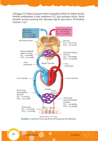 Gambar 7.23 Difusi Gas pada Proses Pernapasan dan Sirkulasi