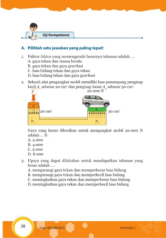 2. Sebuah alat pengangkat mobil memiliki luas penampang pengisap